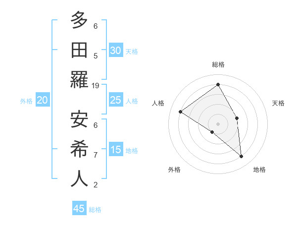 多田羅 安希人さんを姓名の画数から五運を鑑定
