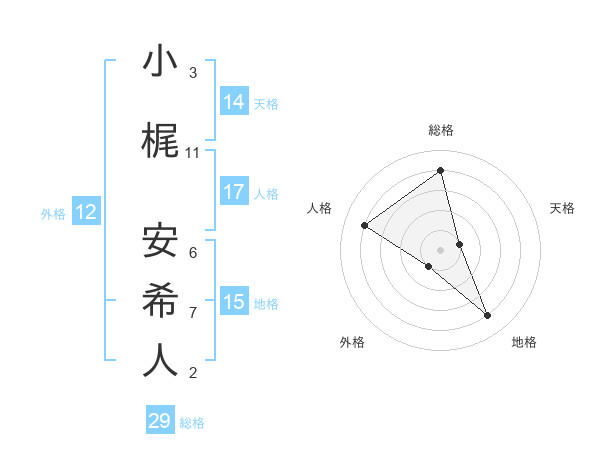 小梶 安希人さんを姓名の画数から五運を鑑定