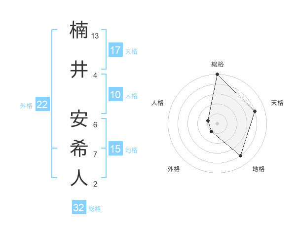 楠井 安希人さんの総格は32画の5点!