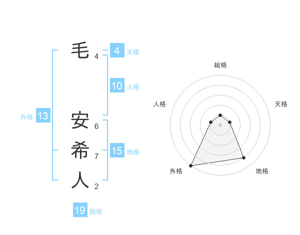 毛 安希人さんの外格は13画の5点