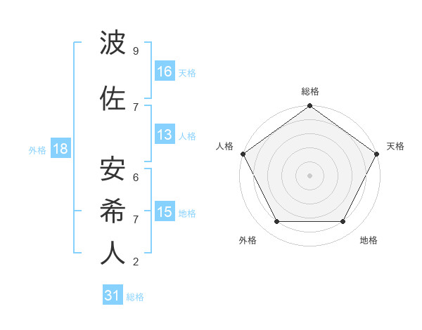 波佐 安希人さんの総格は31画の5点!