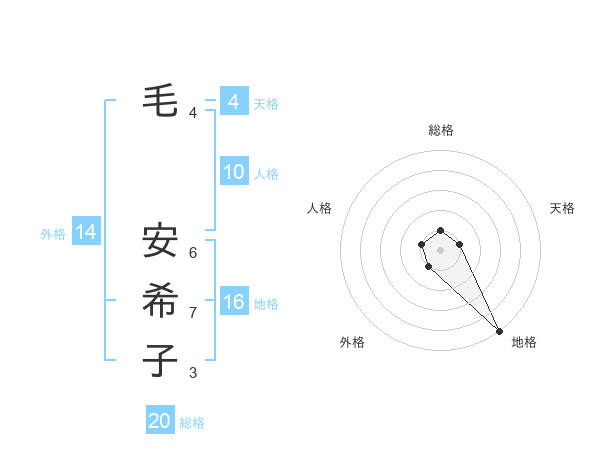 毛 安希子さんの総格は20画の1点!