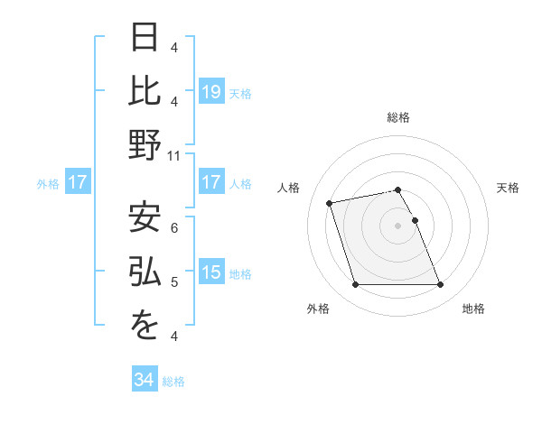 日比野 安弘をさんを姓名の画数から五運を鑑定
