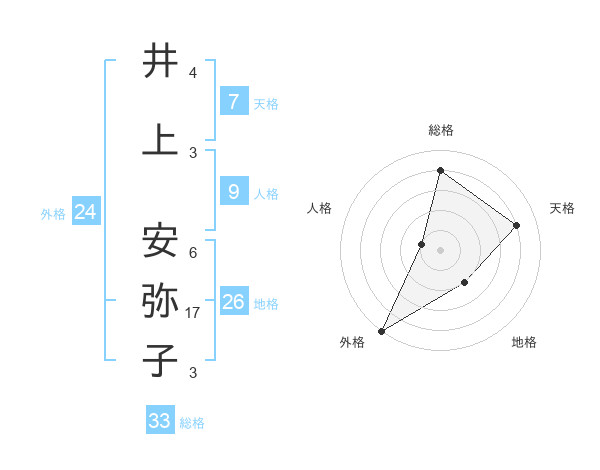 井上 安弥子さんの天格は7画の4点!