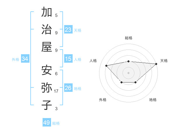 加治屋 安弥子さんを姓名の画数から五運を鑑定