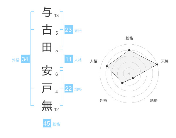 与古田 安戸無さんの総格は45画の4点