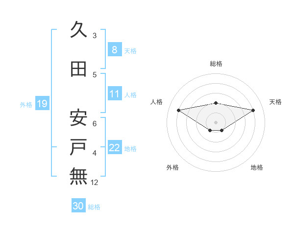 久田 安戸無さんを姓名の画数から五運を鑑定