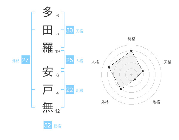 多田羅 安戸無さんを姓名の画数から五運を鑑定
