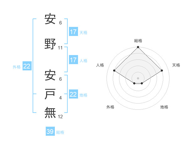 安野 安戸無さんを姓名の画数から五運を鑑定