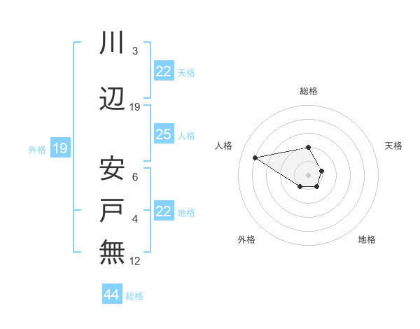 川辺 安戸無さんを姓名の画数から五運を鑑定