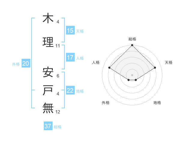 木理 安戸無さんの総格は37画の5点!