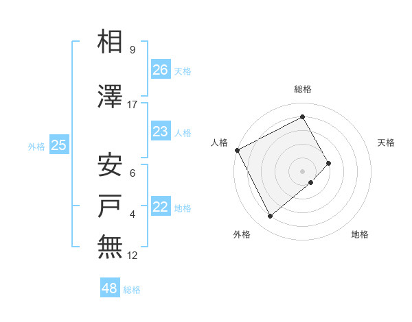 相澤 安戸無さんを姓名の画数から五運を鑑定