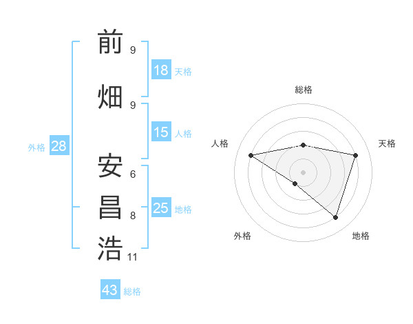 前畑 安昌浩さんの天格は18画の4点!