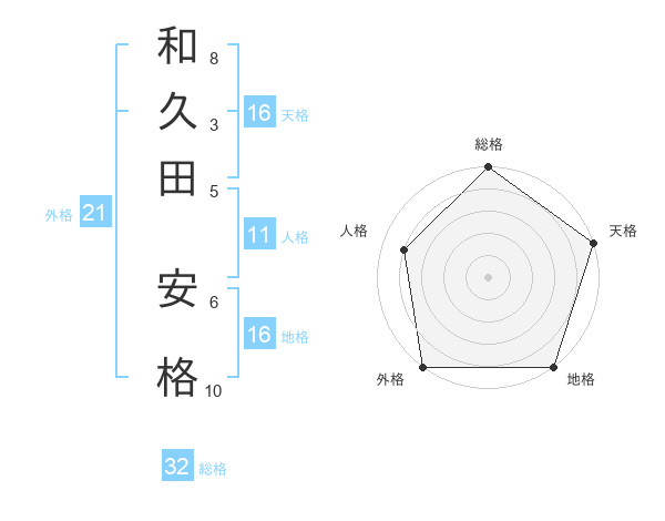 和久田 安格さんの外格は21画の5点!