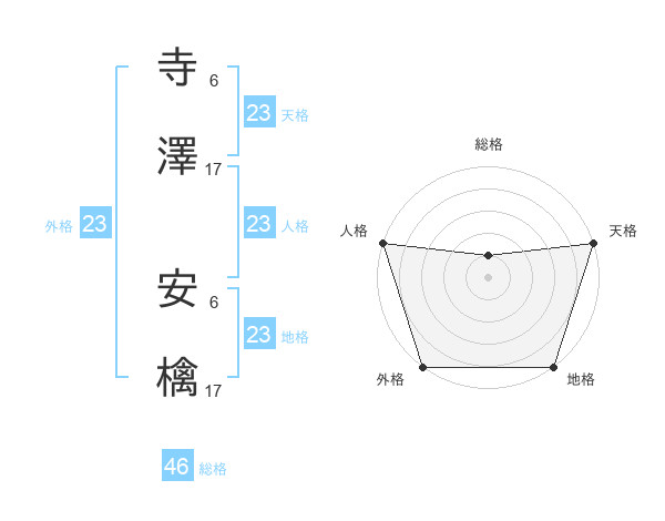 寺澤 安檎さんの外格は23画の5点!