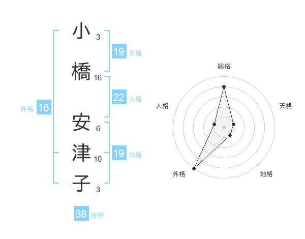 小橋 安津子さんを姓名の画数から五運を鑑定