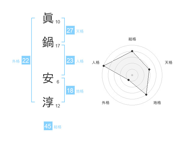 眞鍋 安淳さんを姓名の画数から五運を鑑定