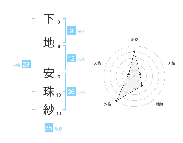下地 安珠紗さんを姓名の画数から五運を鑑定