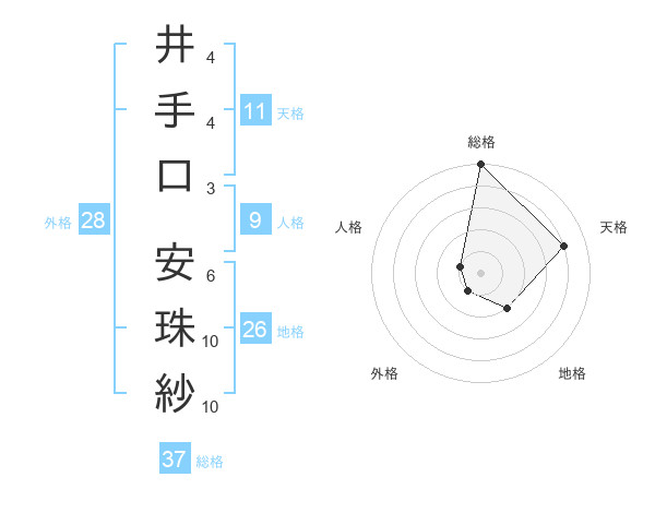 井手口 安珠紗さんの総格は37画の5点!