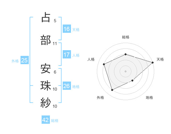 占部 安珠紗さんを姓名の画数から五運を鑑定