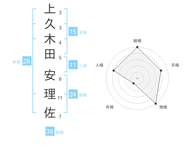 上久木田 安理佐さんの総格は39画の5点!