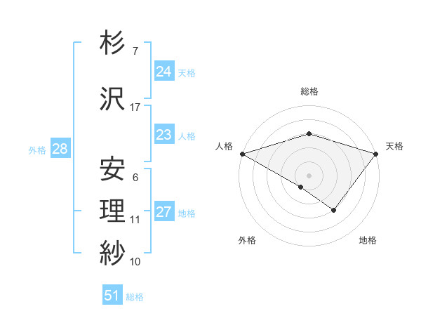杉沢 安理紗さんを姓名の画数から五運を鑑定
