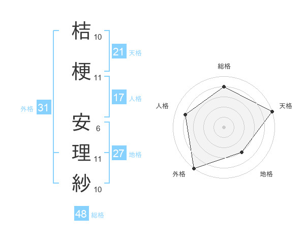 桔梗 安理紗さんの外格は31画の5点!