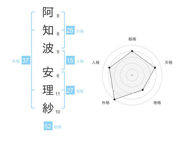 阿知波 安理紗さんの総格は52画の4点!
