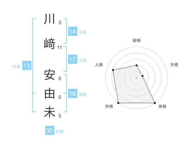 川﨑 安由未さんを姓名の画数から五運を鑑定