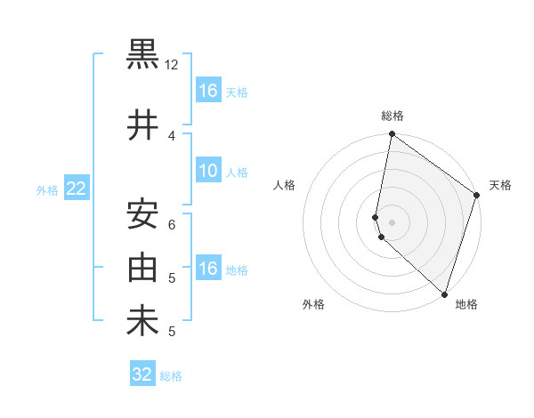 黒井 安由未さんを姓名の画数から五運を鑑定
