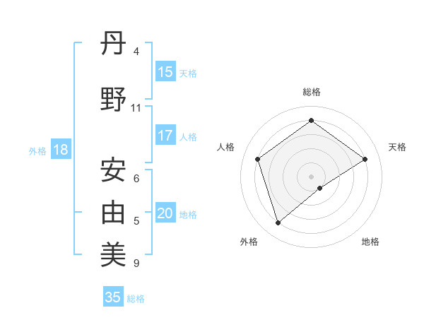 丹野 安由美さんを姓名の画数から五運を鑑定