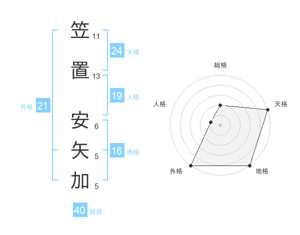 笠置 安矢加さんの総格は40画の2点!