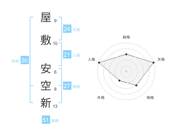 屋敷 安空新さんを姓名の画数から五運を鑑定