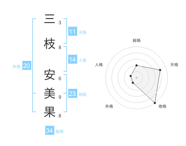 三枝 安美果さんを姓名の画数から五運を鑑定