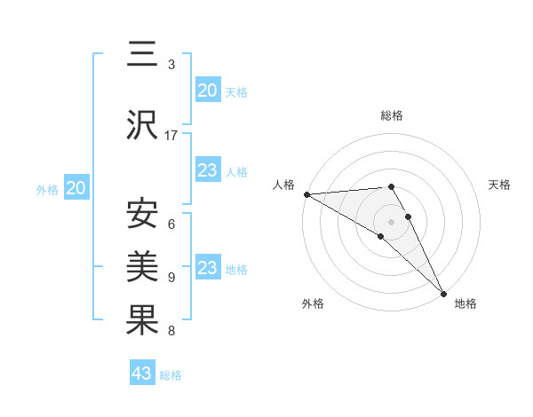 三沢 安美果さんの総格は43画の2点