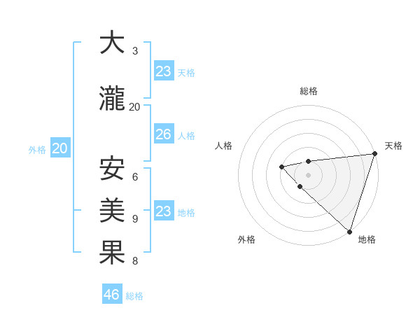 大瀧 安美果さんを姓名の画数から五運を鑑定