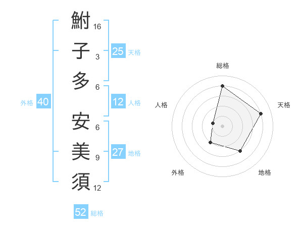 鮒子多 安美須さんを姓名の画数から五運を鑑定