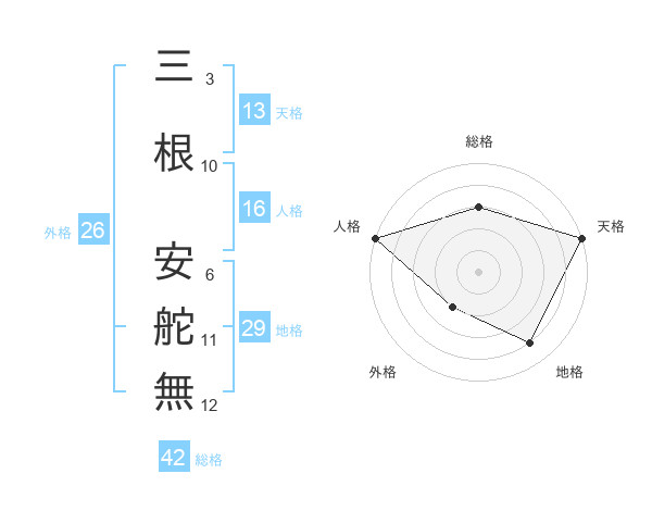 三根 安舵無さんを姓名の画数から五運を鑑定