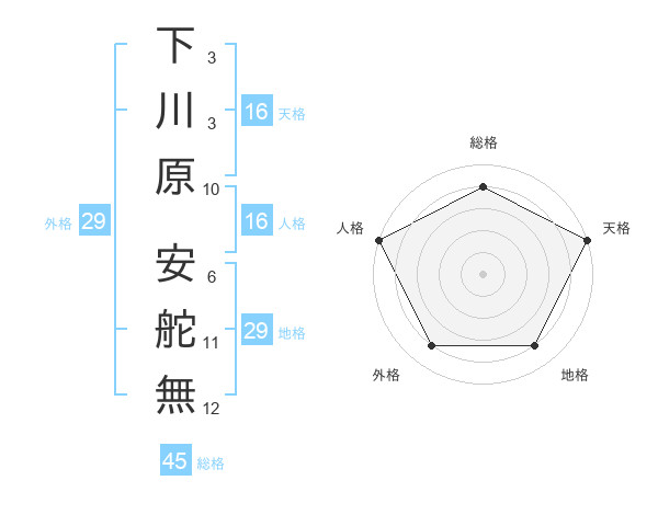 下川原 安舵無さんを姓名の画数から五運を鑑定