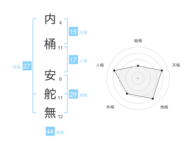 内桶 安舵無さんを姓名の画数から五運を鑑定