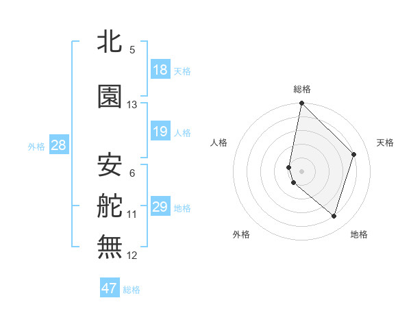 北園 安舵無さんを姓名の画数から五運を鑑定