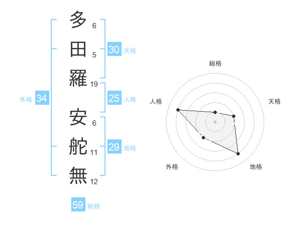 多田羅 安舵無さんを姓名の画数から五運を鑑定