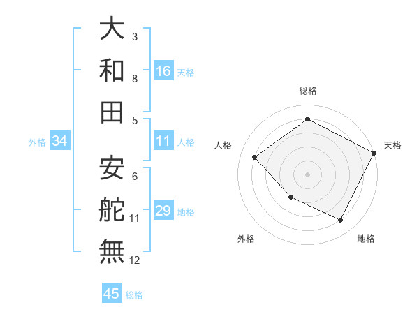 大和田 安舵無さんの総格は45画の4点!