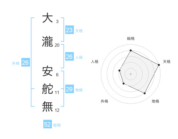 大瀧 安舵無さんを姓名の画数から五運を鑑定