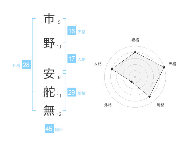 市野 安舵無さんを姓名の画数から五運を鑑定