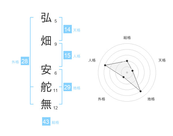 弘畑 安舵無さんの総格は43画の2点!