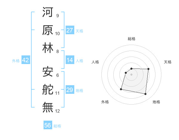 河原林 安舵無さんを姓名の画数から五運を鑑定