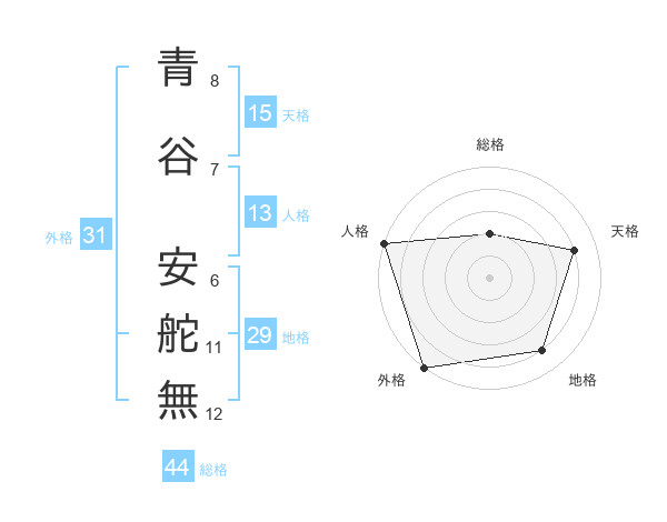 青谷 安舵無さんを姓名の画数から五運を鑑定