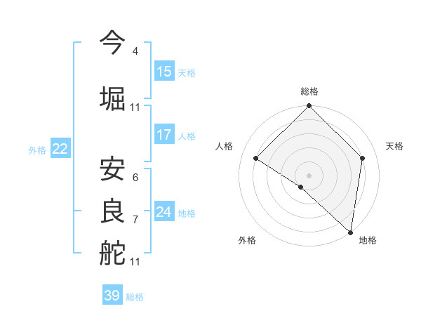 今堀 安良舵さんを姓名の画数から五運を鑑定