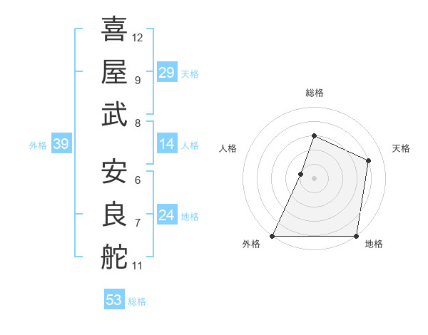 喜屋武 安良舵さんの総格は53画の3点